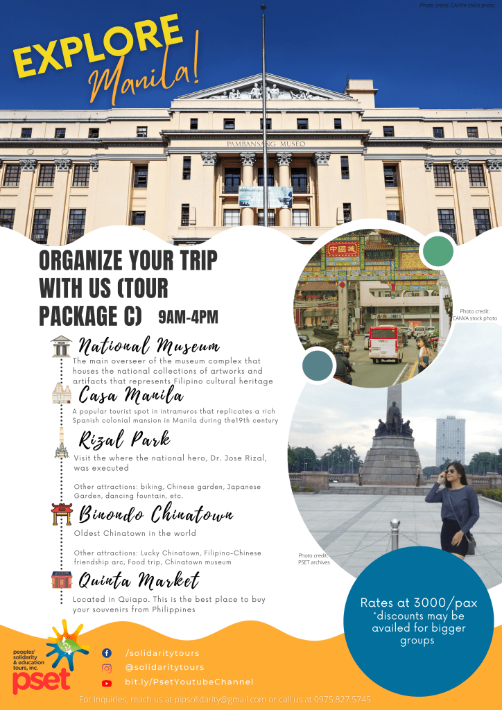 Study tours are 2- to 6-week courses that combine historical and cultural tours, formal lectures on pressing social issues, and field exposures done in partnership with universities and various people’s organisations.